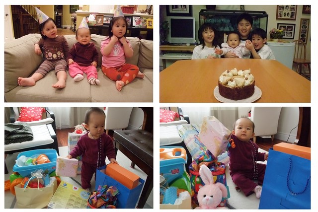 到大阿姨家﹐表姐可捷和可淇一起戴了PARTY帽慶祝安安一歲。